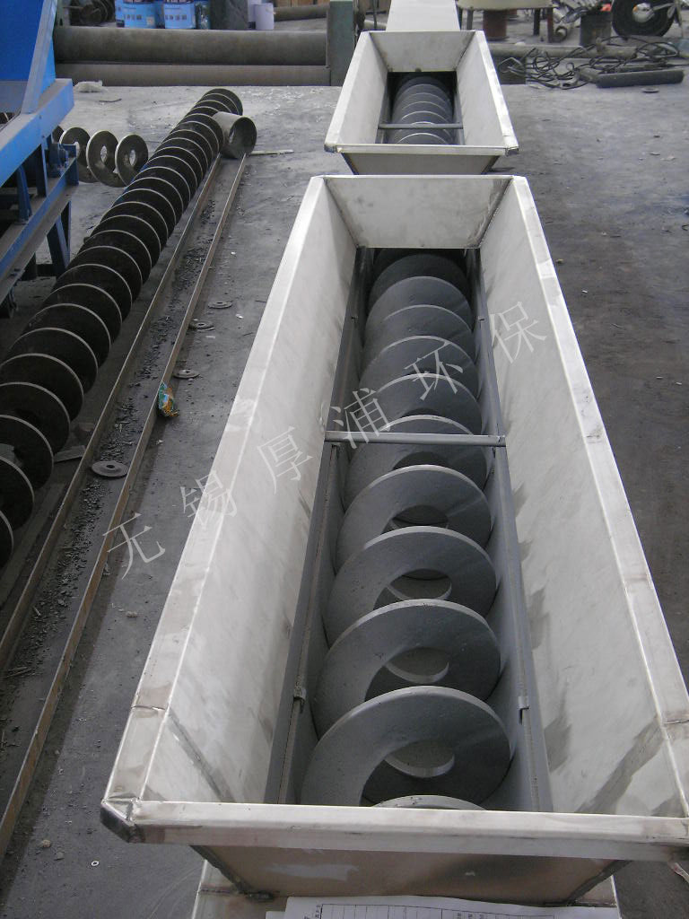 3、螺旋输送槽槽体为U型槽,断面为U形,除进、出料口敞开外其余为密闭式。